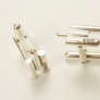 O pereche de accesorii masculine preţioase: butoni personalizaţi din argint 925 cu cristale Swarovski, realizaţi 100% manual în atelierul nostru. Forma deosebita, cu asimetrii bine gândite, precum şi finisajul lucios al suprafeţei lasă să se întrevadă micile cristale Swarovski, montate discret în părţile laterale ale accesoriilor, oferind, astfel, un plus de eleganţă şi rafinament acestor butoni de cămaşă preţioşi.