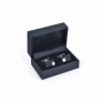 Butonii pentru Camasa prezentati sunt lucrati din Alama placata cu Otel Alb si ornamentati cu Onix Negru.