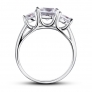 Inel de logodna care prin designul sau deosebit pune in valoare taietura princess a cristalului principal, alaturi de celelalte doua cristale.